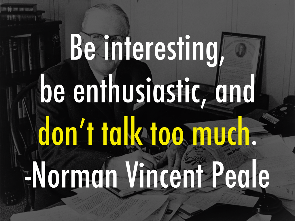 The best conversationalists, when you examine what they say, don’t seem to speak as much as they ask good questions and listen intently and with enthusiasm. You don’t have to be clever or well versed in current events or culture to be the kind of person people want to talk to. You just need to be genuinely interested in others and care enough to inquire and listen.