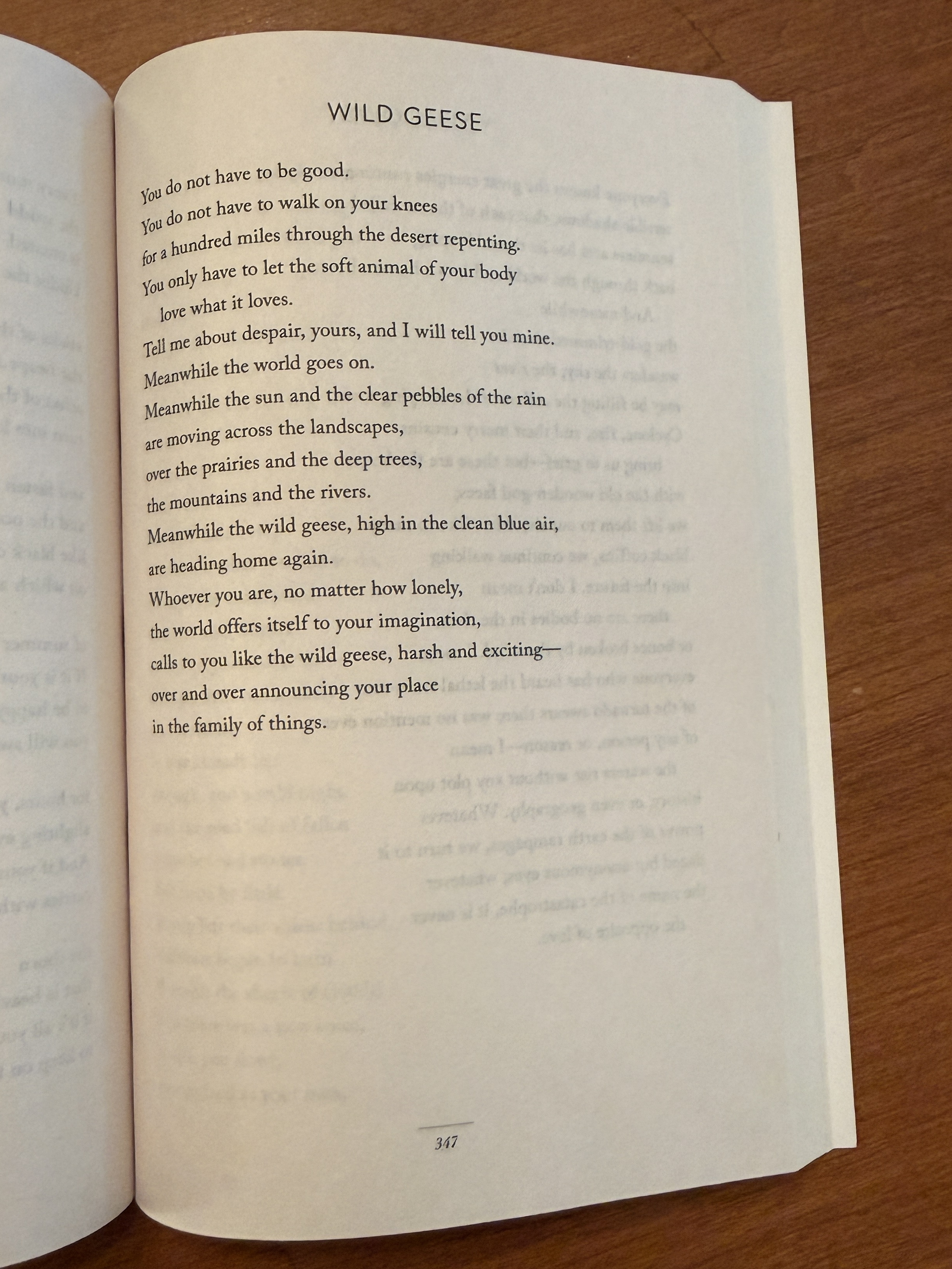 My poem to memorize for this month is another Mary Oliver selection, one of her most well known, and a good one for the start of the year.