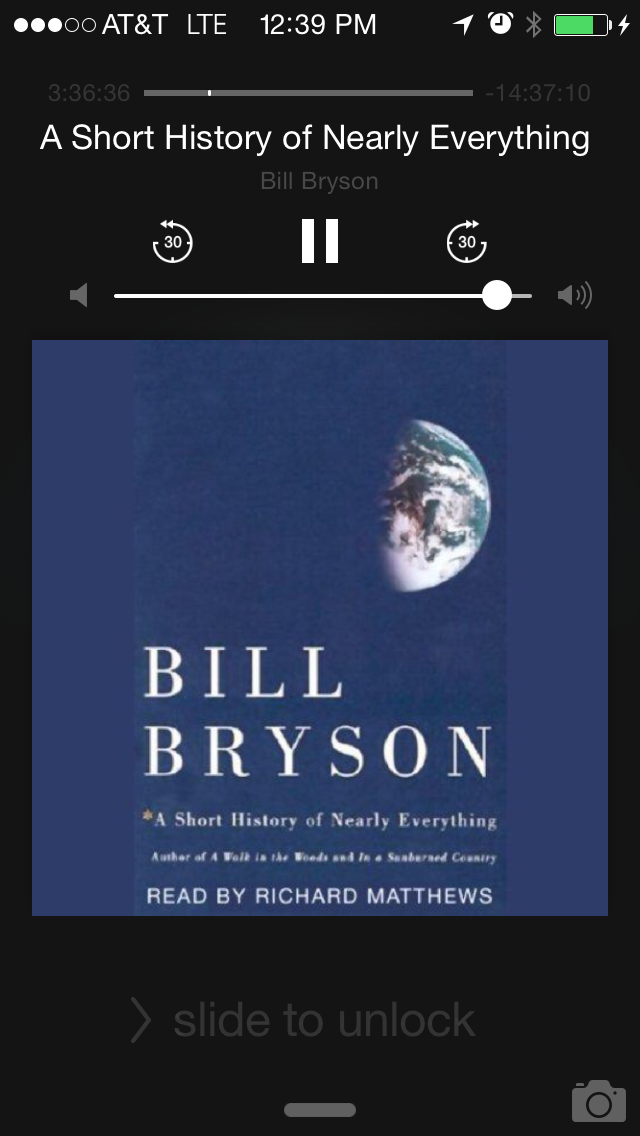 I’ve been reading a great history of Homo sapiens, and I’ve started listening to the audio version of Bill Bryson’s A Short History of Nearly Everything