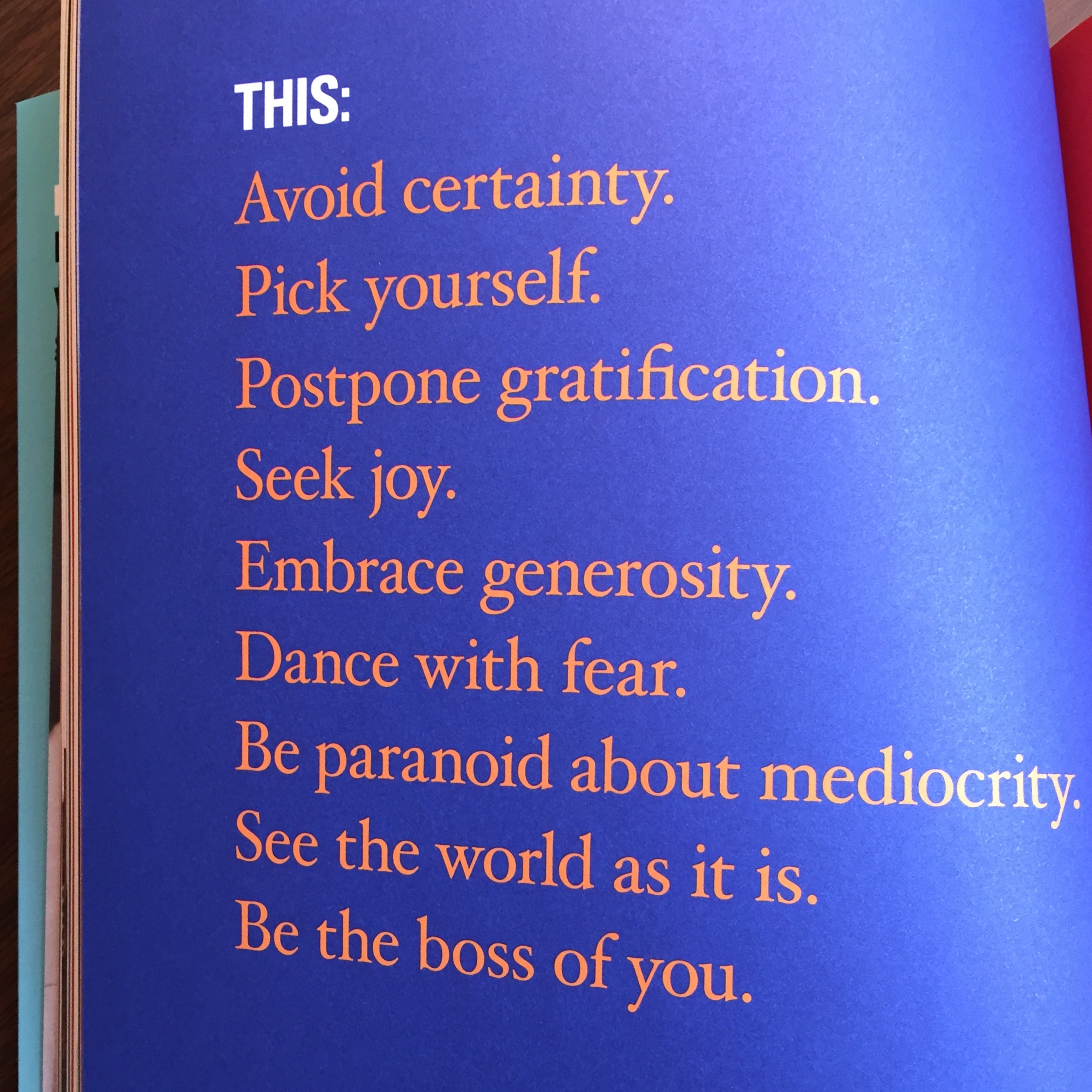 I’m impressed by the content in this magazine. And that it’s a one-man operation makes it even more impressive. There are insights on seemingly every page. It’s stuffed with meaty interviews with interesting people and is scattered throughout with thoughtful touches like this: