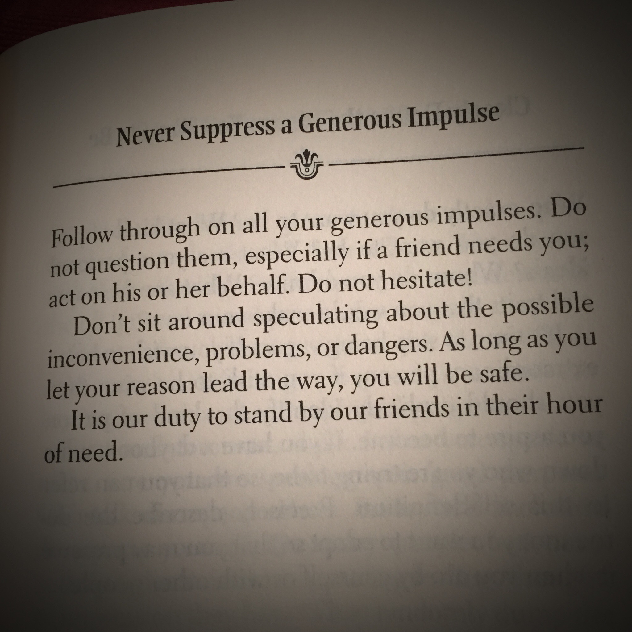 I have never regretted being too generous, though. When you consider an impulse to give, in money or service, see how it feels to up the ante, to offer even more than you think reasonable.